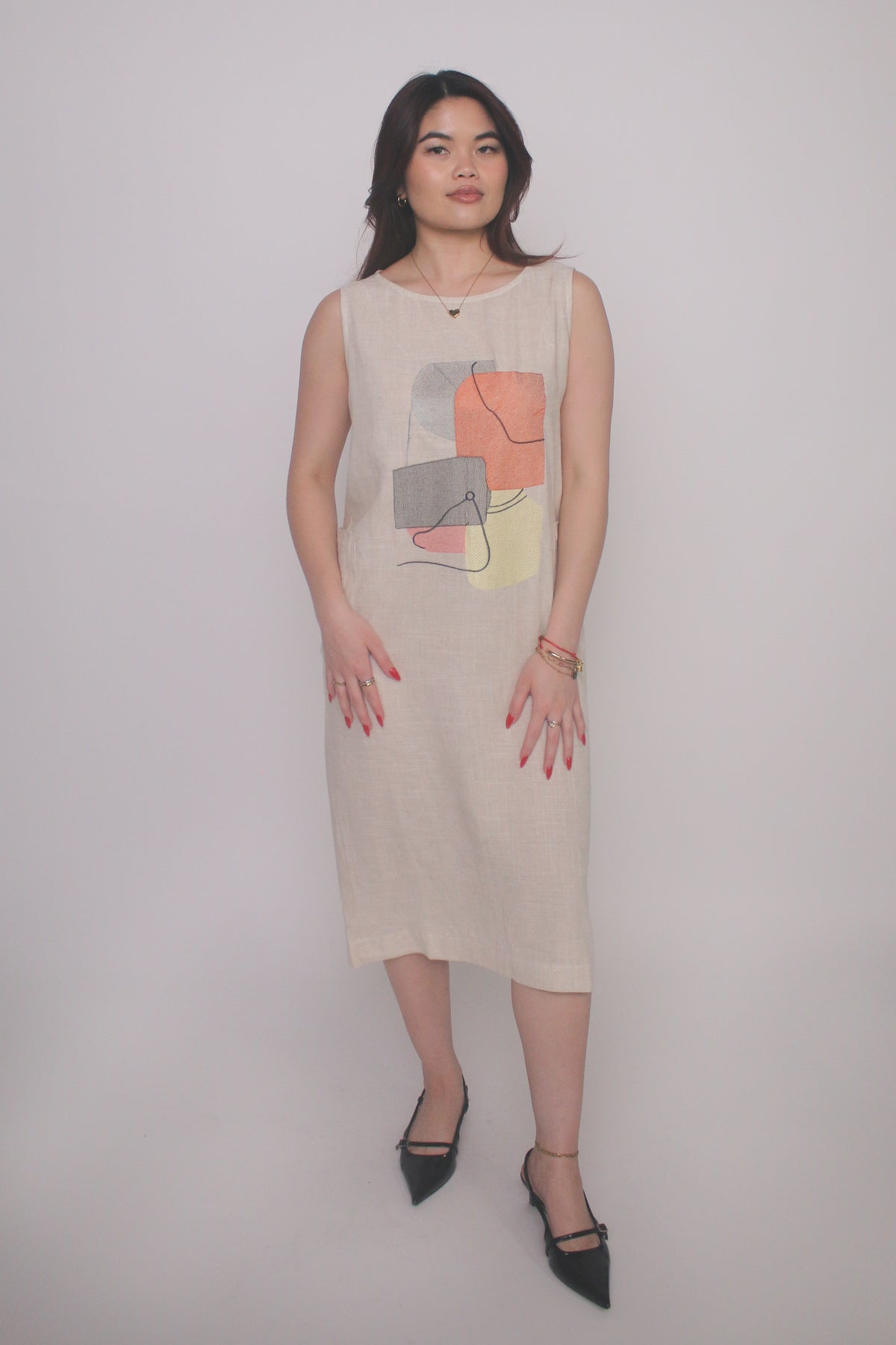 Abstract Print Linen Blend Midi Dress
